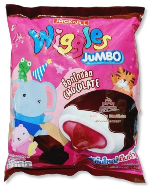 Mô tả sản phẩm Kẹo Dẻo Bông Gòn Wiggles Jumbo Phủ Socola Và Nhân Mứt Dâu Thái Lan (Gói 108g)Kẹo Dẻo Bông Gòn Wiggles Jumbo Phủ Socola Và Nhân Mứt Dâu Thái Lan (Gói 108g) là một sản phẩm đến từ Thái Lan. Đây là loại kẹo marshmallow có lớp phủ socola và nhân mứt dâu, tạo nên hương vị thơm ngon, độc đáo. Kẹo xốp marshmallow (kẹo bông gòn), phủ bên ngoài là lớp socola, nhân là mứt dâu siro chua ngọt thơm lừng. Cắn 1 miếng là tan chảy luôn ạ! Bạn nào mê dâu thì không thể bỏ qua món ăn vặt hấp dẫn này, đặc biệt là các bé rất mê luôn ạ.