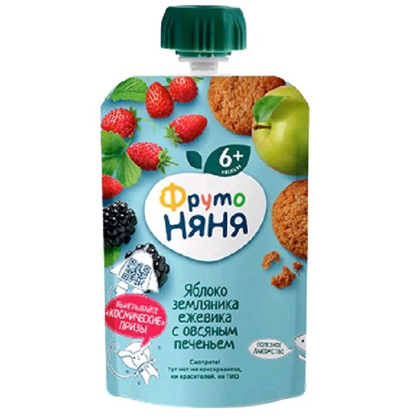 (315) FRUTO Trái cây nghiền táo, dâu, mâm xôi đen, bánh quy 90g 6m+ - Túi