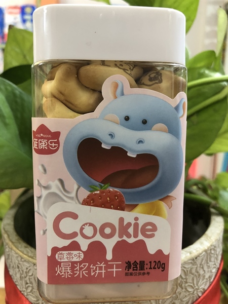 (393) YAKONOLE bánh cookie hà mã vị dâu 120g, màu hồng - Chai