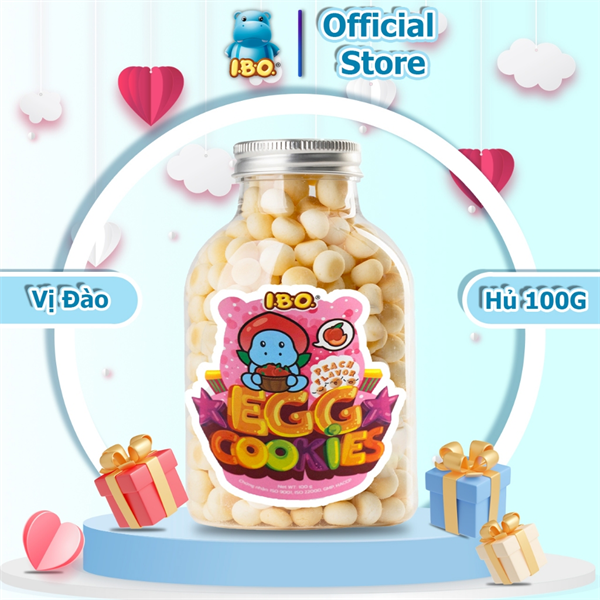 (570) IBO BÁNH BI TRỨNG ĂN DẶM EGG COOKIES HƯƠNG ĐÀO, MÀU HỒNG 100G - Chai